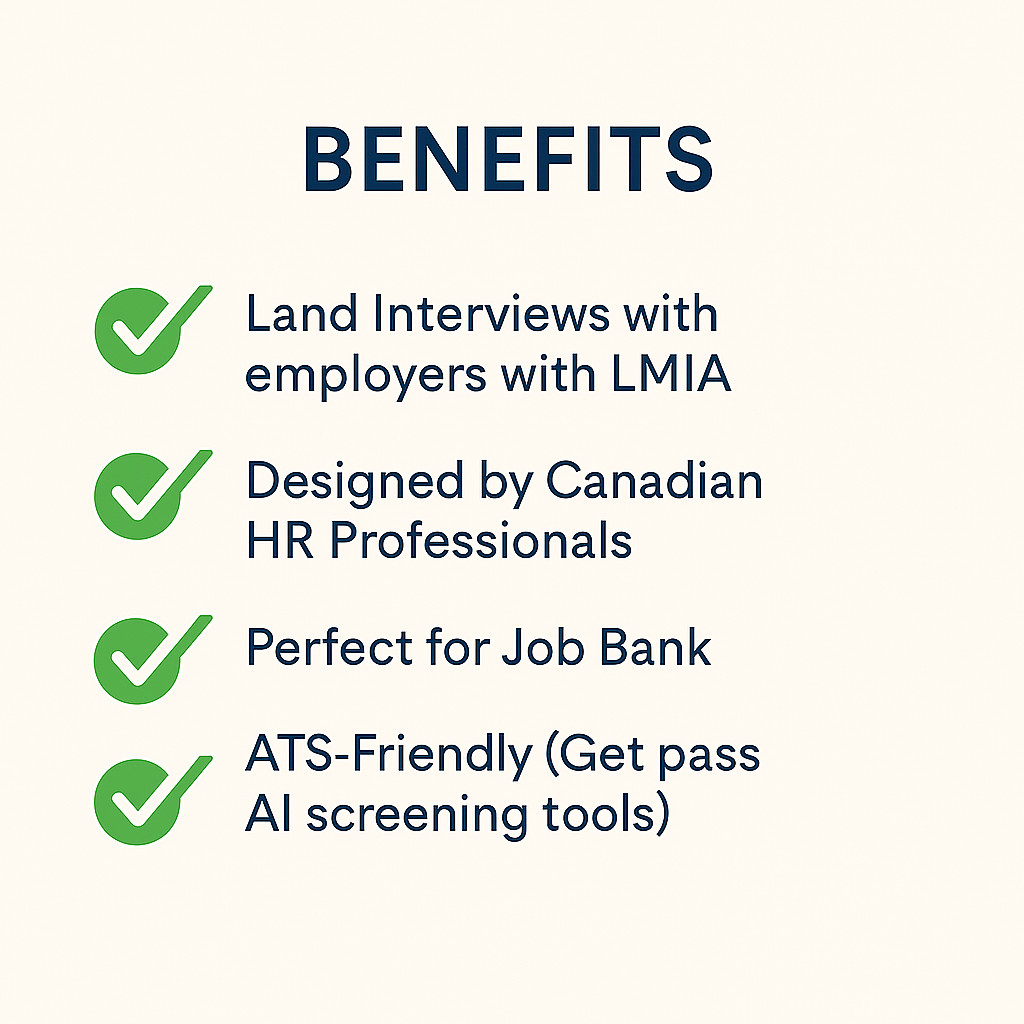 Don’t let a poorly written resume hold you back. This bundle is your shortcut to creating a standout application tailored for the Canadian job market with clarity, structure, and professional appeal.